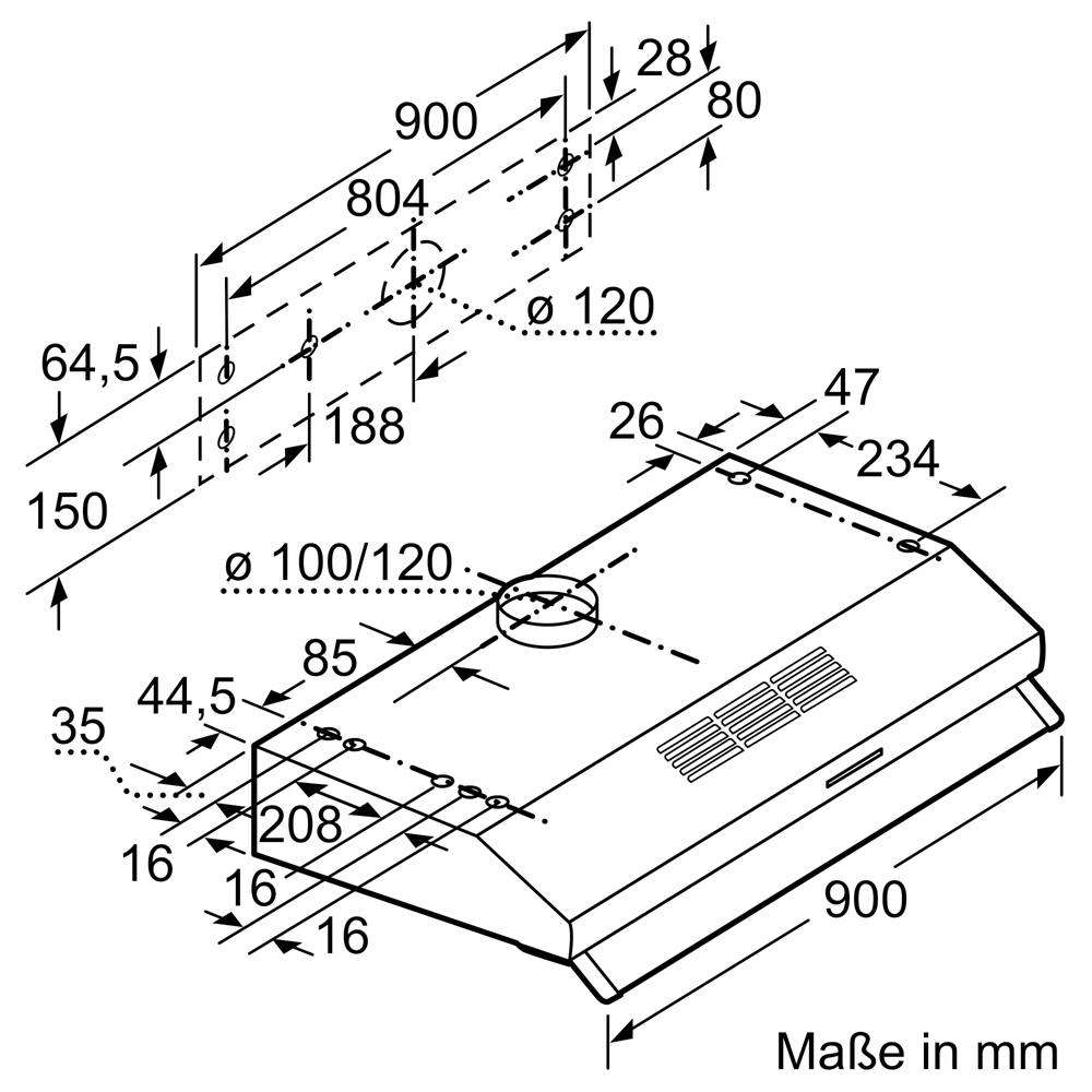 Produktbezeichnung: LU93LCC20 iQ300, Unterbauhaube, 90 cm, Weiß