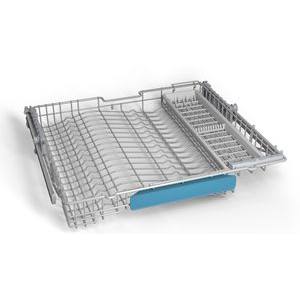 • - Flexibler Schiebeeinsatz: ermöglicht variable Einstellung und somit Beladung von langstieligen Gläsern im Oberkorb - Herausnehmbare Messerablage - Wellenförmiges Design als Schutz gegen Rutschen und Umkippen - Messerschutz: verhindert das Herausrutschen von Messern